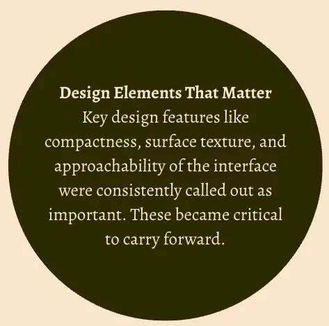 Using internally defined aesthetic attributes (e.g., friendly and approachable, space-saving), participants rated the importance of each, helping us understand what values mattered most, and why.