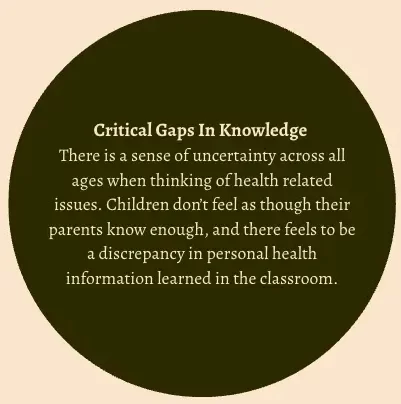 We interviewed adolescents, parents, and teachers to gain better insight on the perceived wellness of the adolescent population. Our interviews remained broad as we were looking for a holistic view of health and where the adolescent may feel they are lacking in resources.